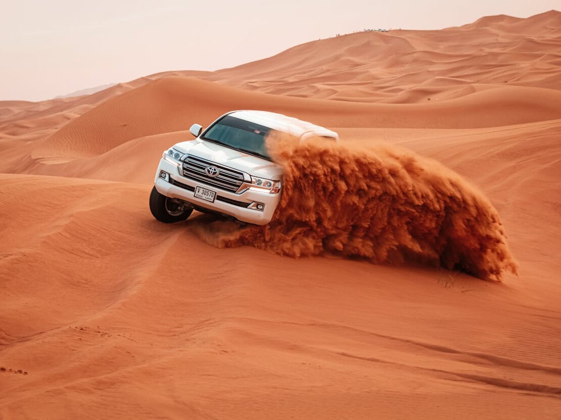 • Dubai Desert Safari with camel ride, sandboarding, BBQ dinner, and belly dance